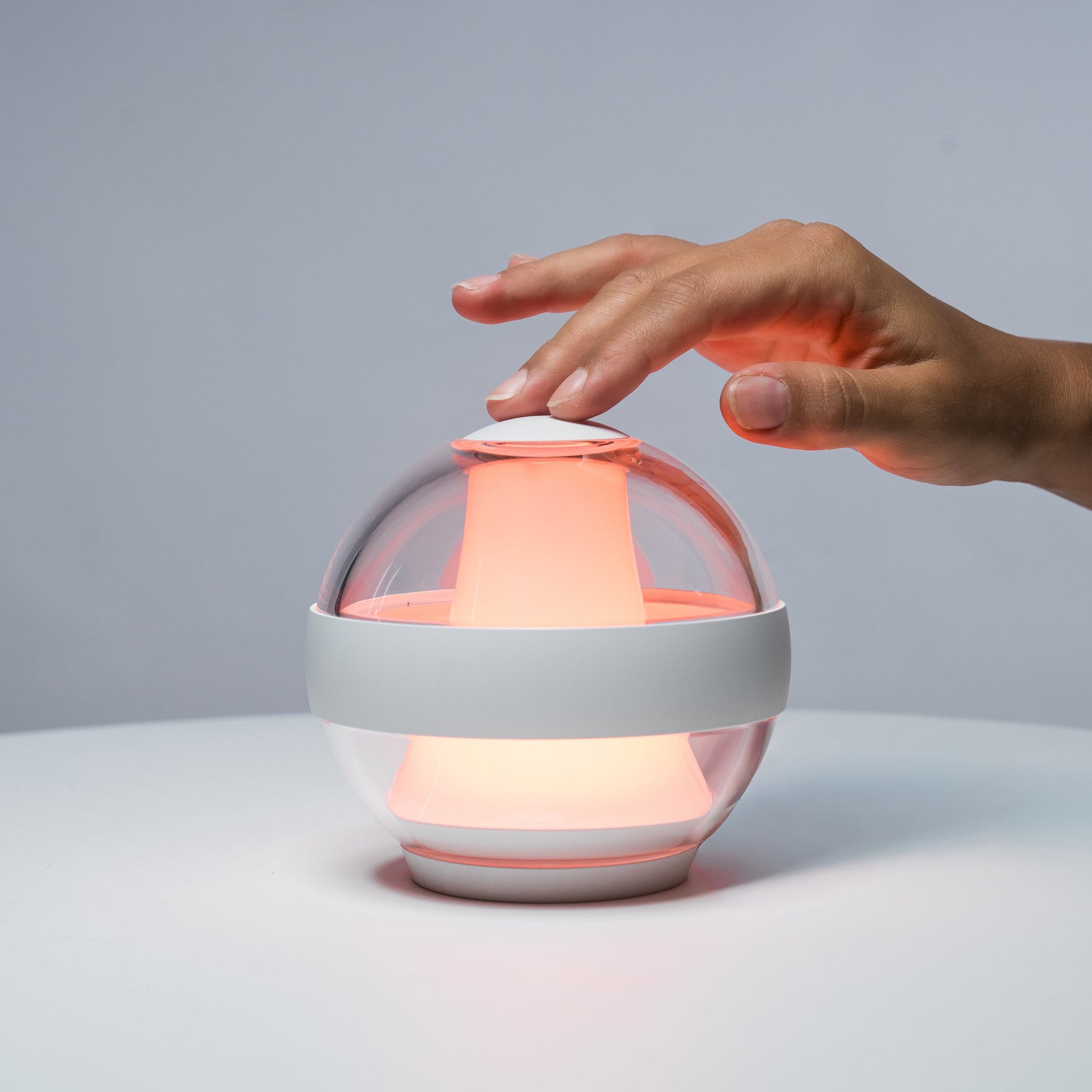 Eleganz trifft Funktion – eine minimalistische Glaskugel, die sich kabellos und dimmbar in jedes Zuhause einfügt.